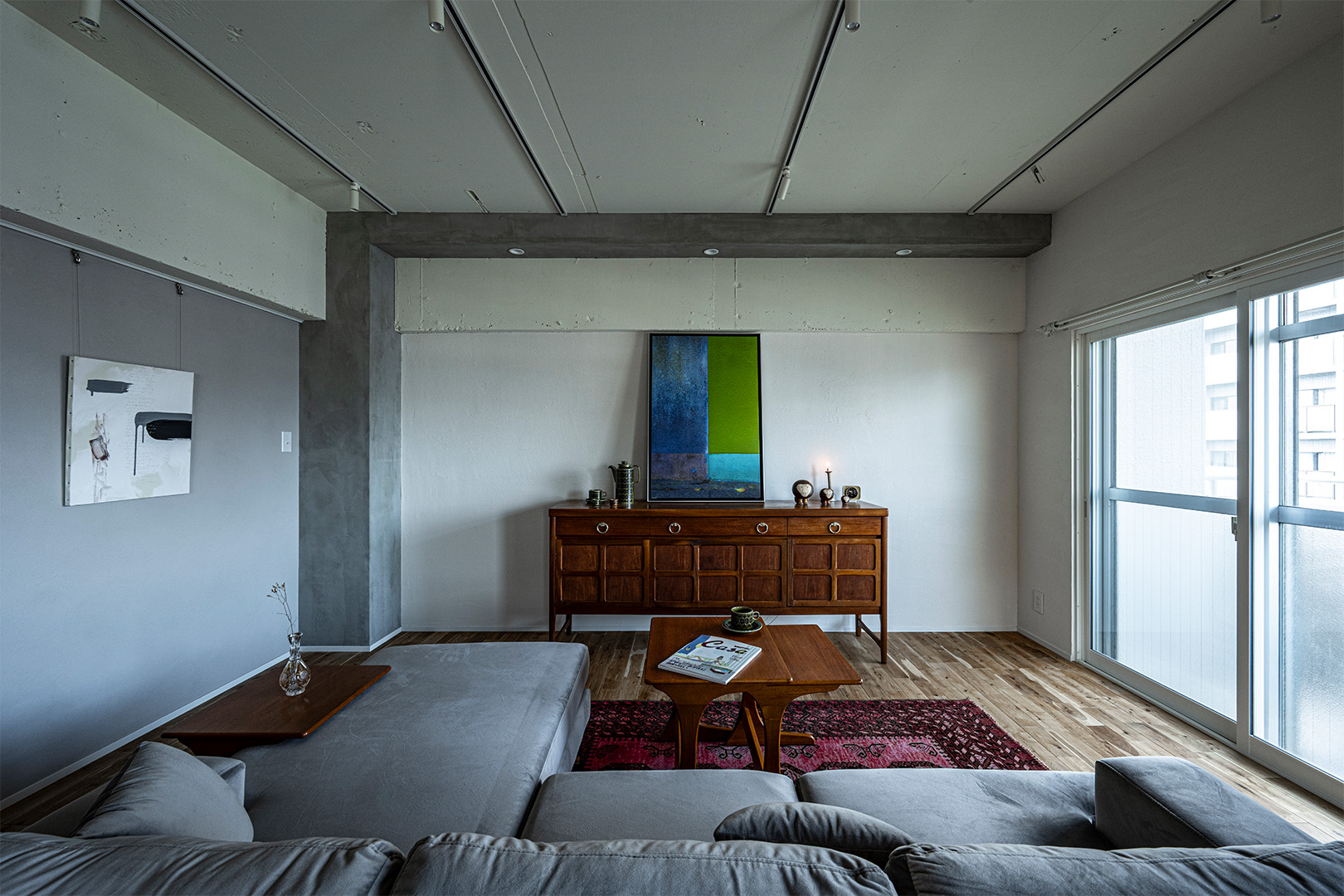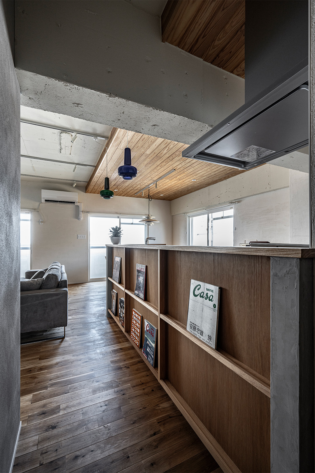 古きよいものを尊ぶ、それは建築に従事する人間にとっての必然。イメージしたのは10年後。より馴染むように。より一体となるように、人に馴染む、暮らしに馴染む。既存のむき出しコンクリートをあえて残し、漆喰・無垢フロアーを添えることによって、ナチュラル感がより引き立つ。ユナイテッドの設計力をぜひご体感ください。