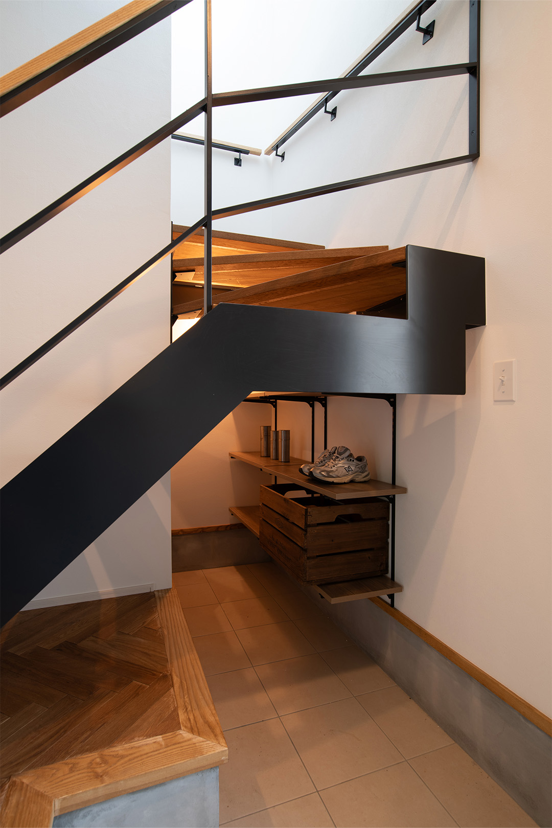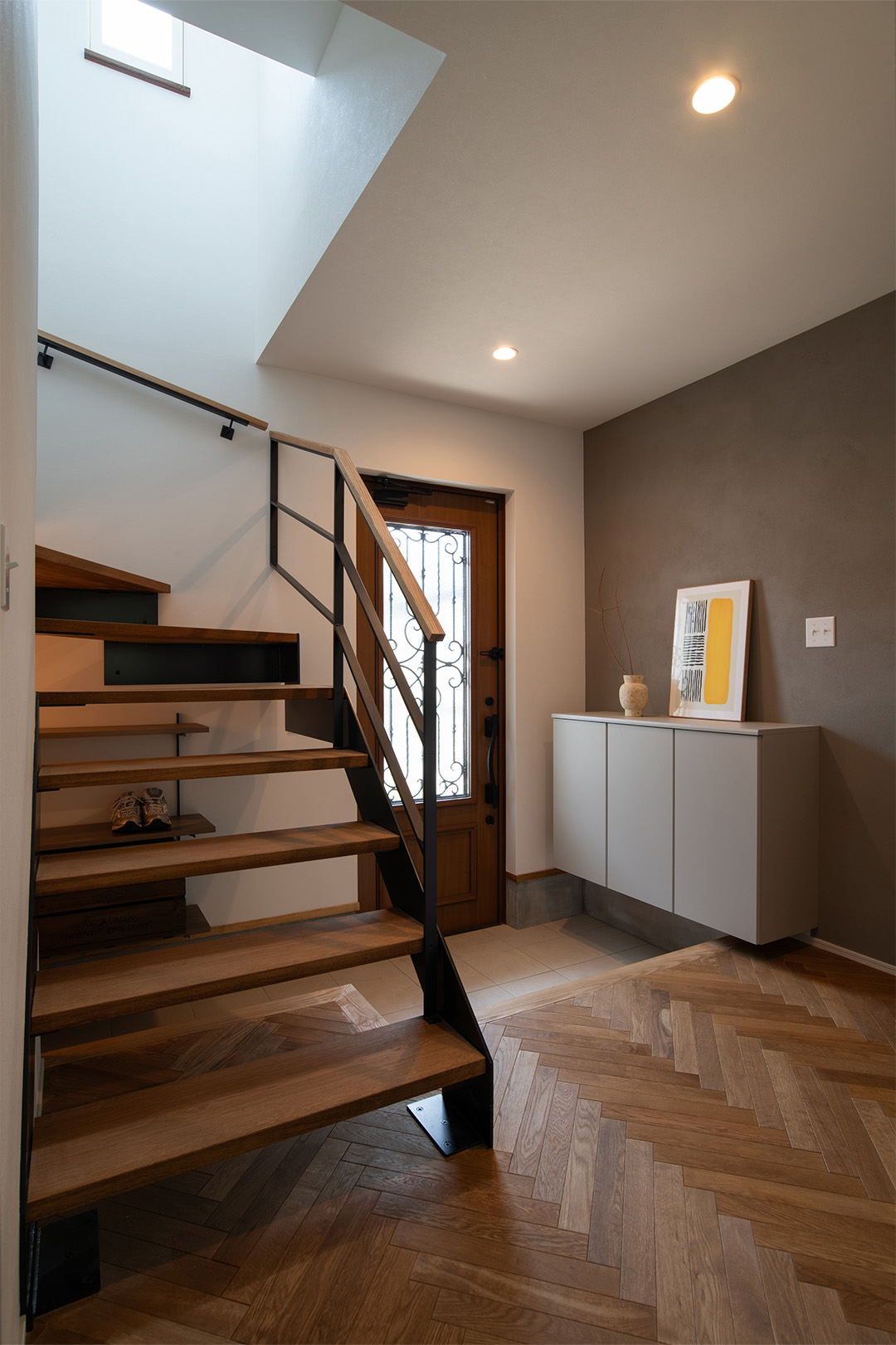 - 2Fへ上がる階段をスケルトン階段にすることで、玄関ホールが明るくなりました